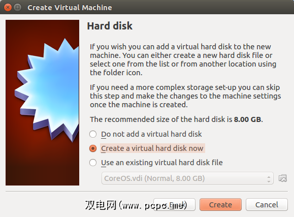 选择RAM后,您需要添加一个虚拟硬盘。使用立即创建虚拟硬盘选项。