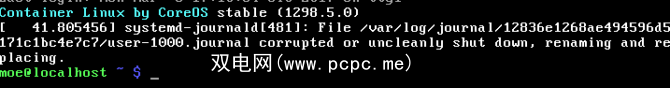 输入您的用户名和密码。这将加载一条消息,提示“ Container Linux by CoreOS [version]"和一个新的命令行。