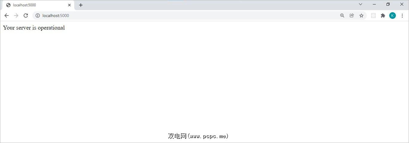 app.get()方法的目的是从特定资源中获取数据。这个方法有两个参数:一个路径和一个回调函数。上面示例中的路径参数有一个正斜杠,表示根位置。因此,导航到http://localhost:5000 URL(这是应用程序的根目录),当上面的 index.js 应用程序正在运行时,将在浏览器中生成以下输出: