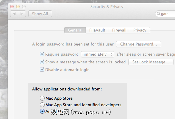 共有三个级别。最严格的限制将只允许Mac App Store中的应用程序-如果您确实非常喜欢Kool Aid的清新口味,请设置此设置。中间选项(在Mountain Lion中为默认选项)仅阻止未经开发人员许可编译的应用程序。第三个选项 Anywhere 允许您不受限制地运行任何应用程序。如果您想完全避免打na,这就是您想要的。
