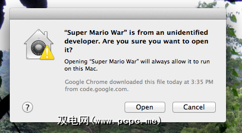 所以有什么大不了的?为了进行演示,我下载了《超级马里奥战争》,主要是因为我知道这种由粉丝制作的16位样式的踩踏程序早于Apple的Gatekeeper。当我尝试运行该软件时,看到以下消息:
