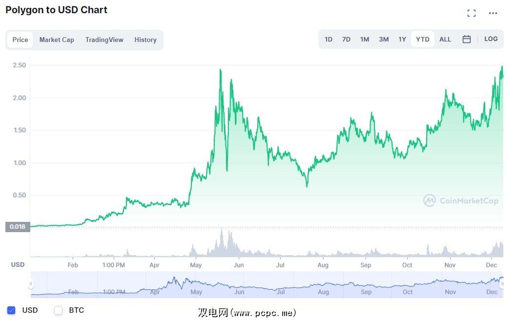 到 2021 年,MATIC 代币的价值上涨了 2,000% 以上。 价格上涨主要是由 Polygon 网络的发展引起的,这增加了对数字代币的需求。