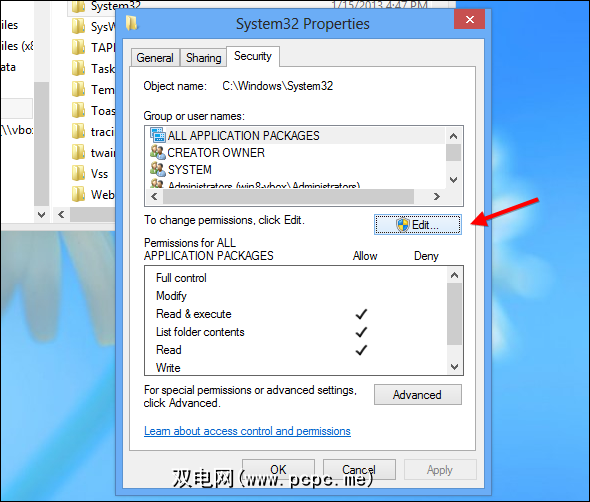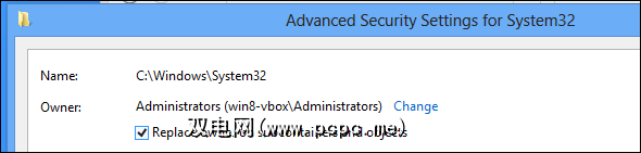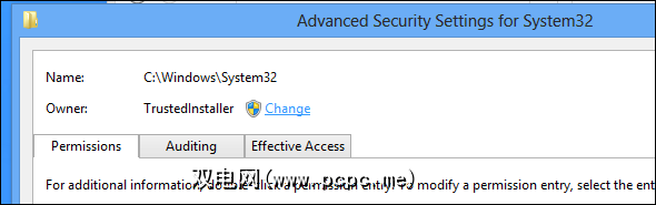 单击TrustedInstaller旁边的 Change 链接以更改所有者。