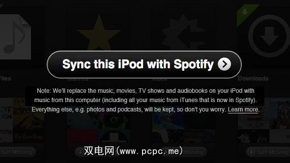 Spotify和iTunes同步不能同时使用。也就是说,您无法同时将音乐库与Spotify和iTunes同步。如此一来,当您首次将iPod与Spotify同步时,所有先前存在的音乐,电影,电视节目和有声读物将被删除,并替换为可通过以下方式访问的本地文件和下载:特定的Spotify安装。这样,Spotify将有效地替代iTunes(而不是补充它)作为音乐同步工具。