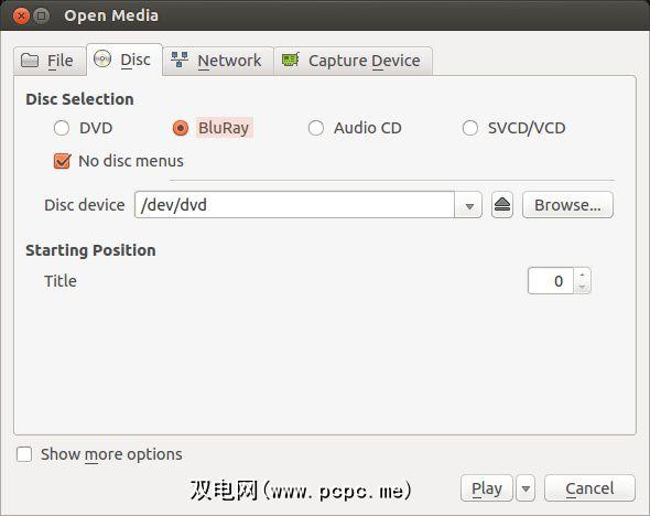 播放器可能无法启动插入Blu-Ray光盘时会自动进行,因此您需要自己打开VLC,然后选择 Media-> Open Disc 。然后从各种媒体选项中选择 Blu-Ray ,并确保已选择 No Disc Menus 以防止VLC崩溃。点击 Play ,就可以开始使用了。