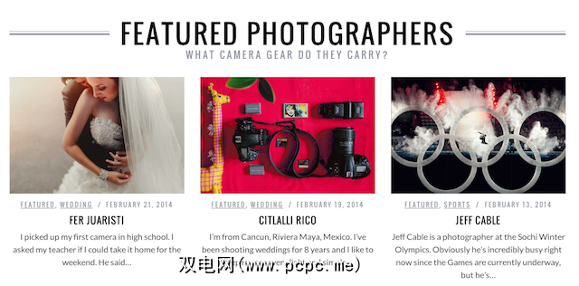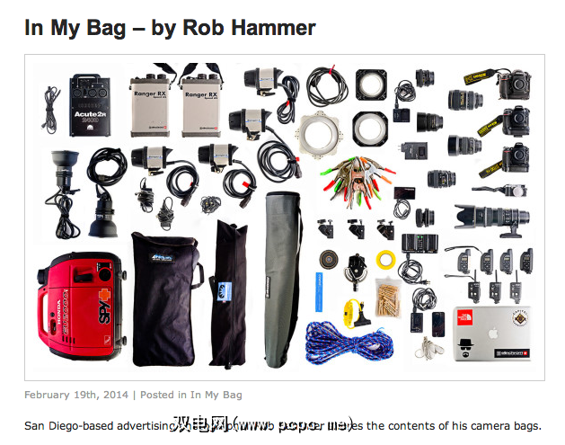 照相旅有一系列类似的博客文章,摄影记者的学生可以和专业人士共享他们的摄影包内容。虽然Photo Brigade不像Japan Camera Hunter那样经常更新网站的此部分,但它们确实为桌面带来了一个有趣的功能。
