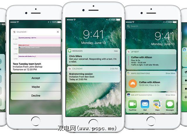 iOS 10包括一个全新的锁定屏幕,其中包括更紧凑的时间和日期视图,使您的通知大放光彩,并占据屏幕的大部分位置。您现在可以通过向右滑动或向左滑动来访问小部件(您当前在iOS 9的``今日''屏幕上看到的小部件)来更快地访问相机。