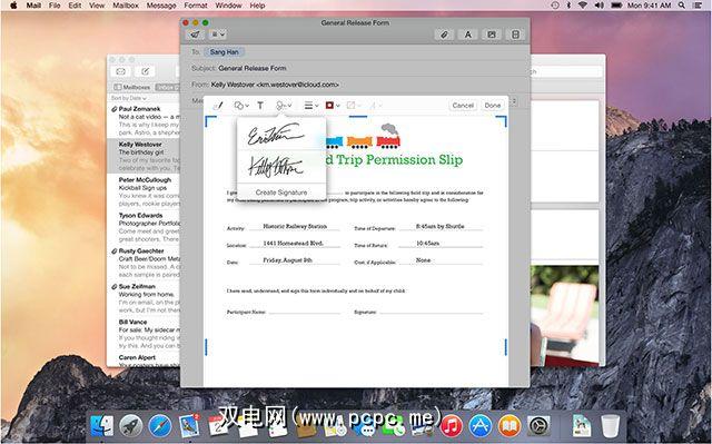 意味着您的所有消息(无论是与其他Apple用户的iMessage消息,还是向其他智能手机用户的SMS消息)现在也将出现在Mac上。该技术使用Wi-Fi,因此两台设备仅需要共享相同的网络(自然是Apple ID凭据),这意味着如果您在一个房间内为手机充电,则可以在Mac上拨打(或拨打)电话。另一个。该技术已与现有的OS X Contacts,Calendar和Messages应用程序以及新的Safari深度集成,因此您只需单击一个号码并拨打电话即可。优胜美地(Yosemite)的重大更新,邮件(Mail)获得了一项称为邮件投递(Mail Drop)的新功能,该功能使用户可以在其iCloud Drive中存储高达5GB的文件(这很可能会占用您的可用空间),供运行任何电子邮件客户端的用户访问。电子邮件客户端还新增了标记功能,可以添加签名,注释,图形,甚至可以自动将直线和箭头转换为附件,然后再将其发送到其他地方。