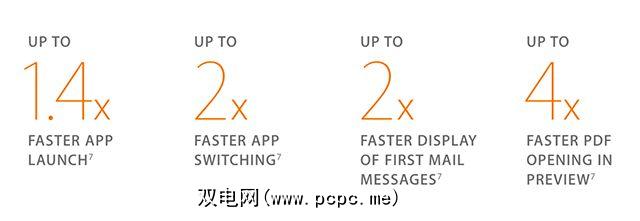 苹果公司正在为此提供一些支持,例如现在显然有应用程序启动速度比优胜美地快1.4倍,切换应用程序和在Mail中显示消息的速度是以前的两倍,现在PDF的打开速度是预览版的四倍。