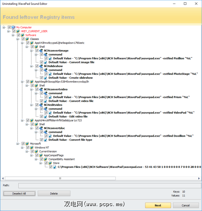 但是,需要注意一件事:NCH Software创建了大量注册表项,并且其中许多注册表项在卸载过程中都被遗忘了。如果要真正清理NCH软件系统,则必须手动清理系统注册表。