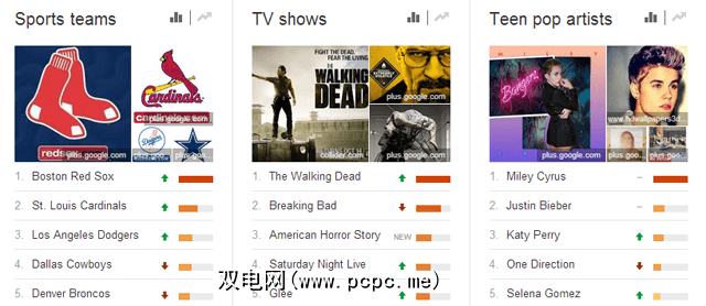 这里有热门排行榜功能,可按类别显示您的热门搜索:演员,运动员,书籍,鸡尾酒,游戏,真人秀,歌曲等。不仅可以跟上搜索的最新趋势,还可以查看这些趋势过去十年发展趋势。精妙!