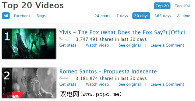 病毒视频图表对于想要在不花费太多时间的情况下跟上YouTube最新病毒视频的人很有用。实际上,如果您有空的话,您可以在几分钟之内消化整个视频列表。毫不奇怪,大多数顶级共享视频都是音乐视频,但是每隔一段时间,您就会发现视频的真正瑰宝。