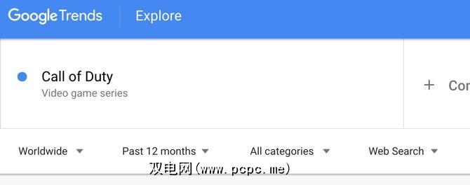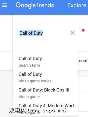 根据您输入的内容,Google趋势会将其视为搜索字词或主题。例如,如果您键入使命召唤,则可以选择通用的搜索字词条目或更具体的视频游戏系列。