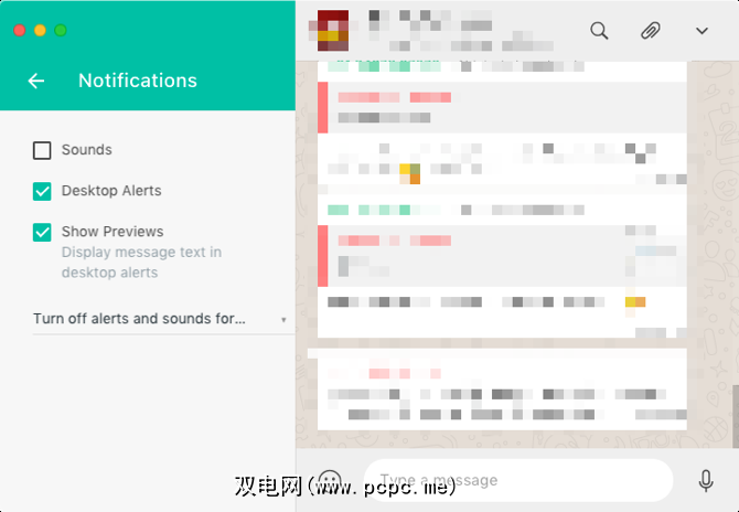 您还可以使用页面底部的下拉选项将WhatsApp Desktop静音一小时或一天。