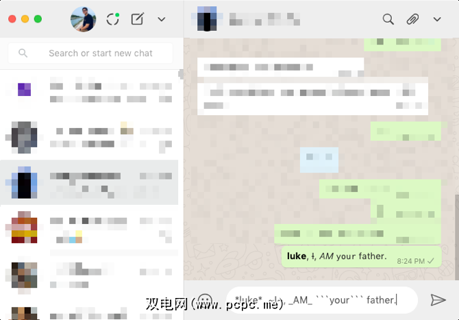 您可以在此处使用相同的修饰符。实际上,在WhatsApp Desktop上做起来要容易得多,因为星号和波浪号等修饰符更容易