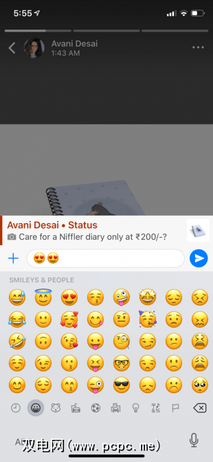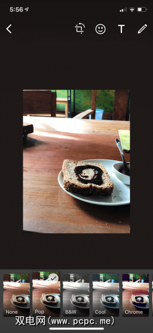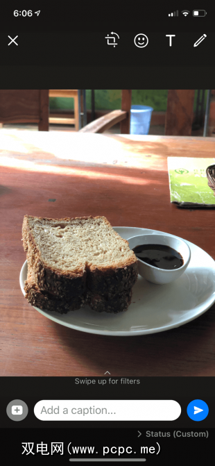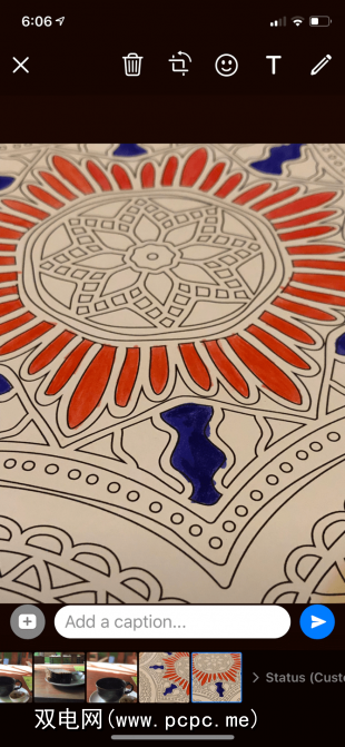 点击铅笔图标可以以任何颜色在图像上进行涂鸦。 表情符号图标可让您在状态上添加表情符号。 文本选项可让您在照片或视频上输入浮动文本。