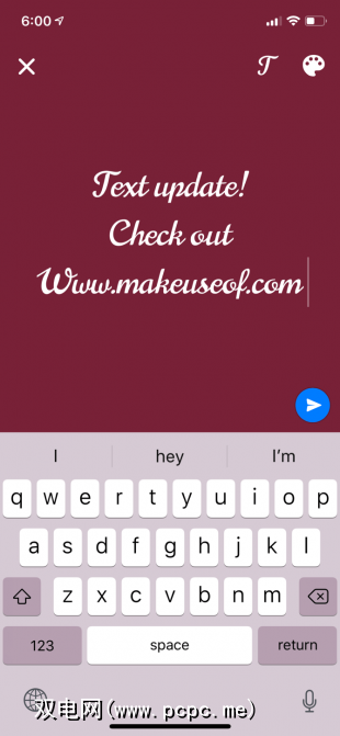 点击顶部的 T 图标以更改字体。点击油漆调色板图标以更改背景颜色。您也可以在此处粘贴链接,该链接将显示为可点击的目标。