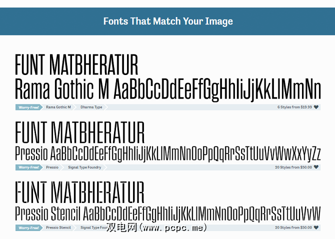 不用担心,那里提供了可帮助您从图像中查找字体的工具。这包括WhatTheFont和其他一些不受欢迎的选择。