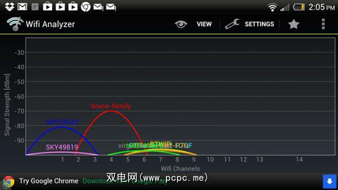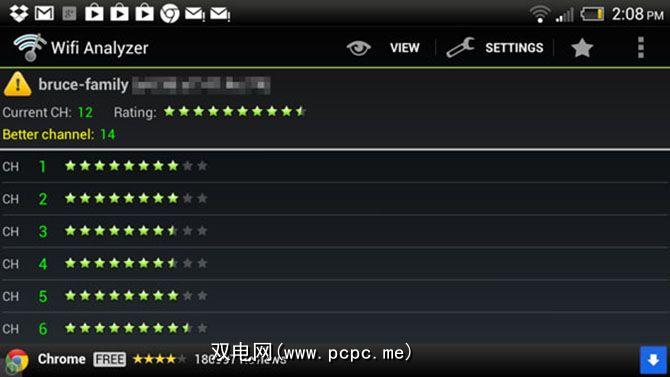 Wifi分析器还通过其 Channel Rating 屏幕完全消除了辛苦工作;它可以帮助您确定家中的Wi-Fi死点。