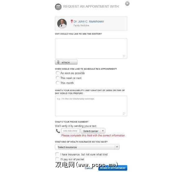 美国用户还可以通过填写如下所示的在线表格与医生预约约会。