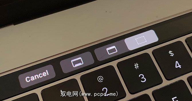 如果您的MacBook Pro带有Touch Bar,这是一种非常有用的情况。按 Cmd + Shift + 4 ,然后触摸栏将为您提供一些选项。只需按触摸栏上的不同按钮,您就可以捕获屏幕的某个区域,单个窗口或整个屏幕。