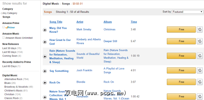 要查看可用资源,请转到Amazon网站并导航至部门>电影,音乐和游戏>数字音乐> Deals>免费 >。您可以按类型在屏幕左侧的列中过滤结果。最受欢迎的类型是“国际",但稍作挖掘,您可以找到从布鲁斯到百老汇的所有音乐。
