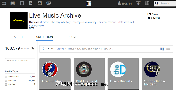 对于音乐爱好者来说,该网站最好的部分是现场音乐档案。它是与etree.org(网络上领先的无损数字音频发行商)合作建立的,并收录了一系列知名艺术家的表演和音乐会。仅在结果的第一页上,您就会发现The Grateful Dead,The Smashing Pumpkins和The Cheese String Incident的音乐。