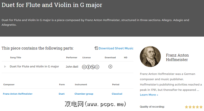 Musopen拥有一些有史以来最著名的古典音乐家的录音。您会发现从巴赫和贝多芬到柴可夫斯基和霍尔斯特的所有事物。您可以按作曲家,表演者,乐器,时期和形式进行搜索,以找到所需的内容。
