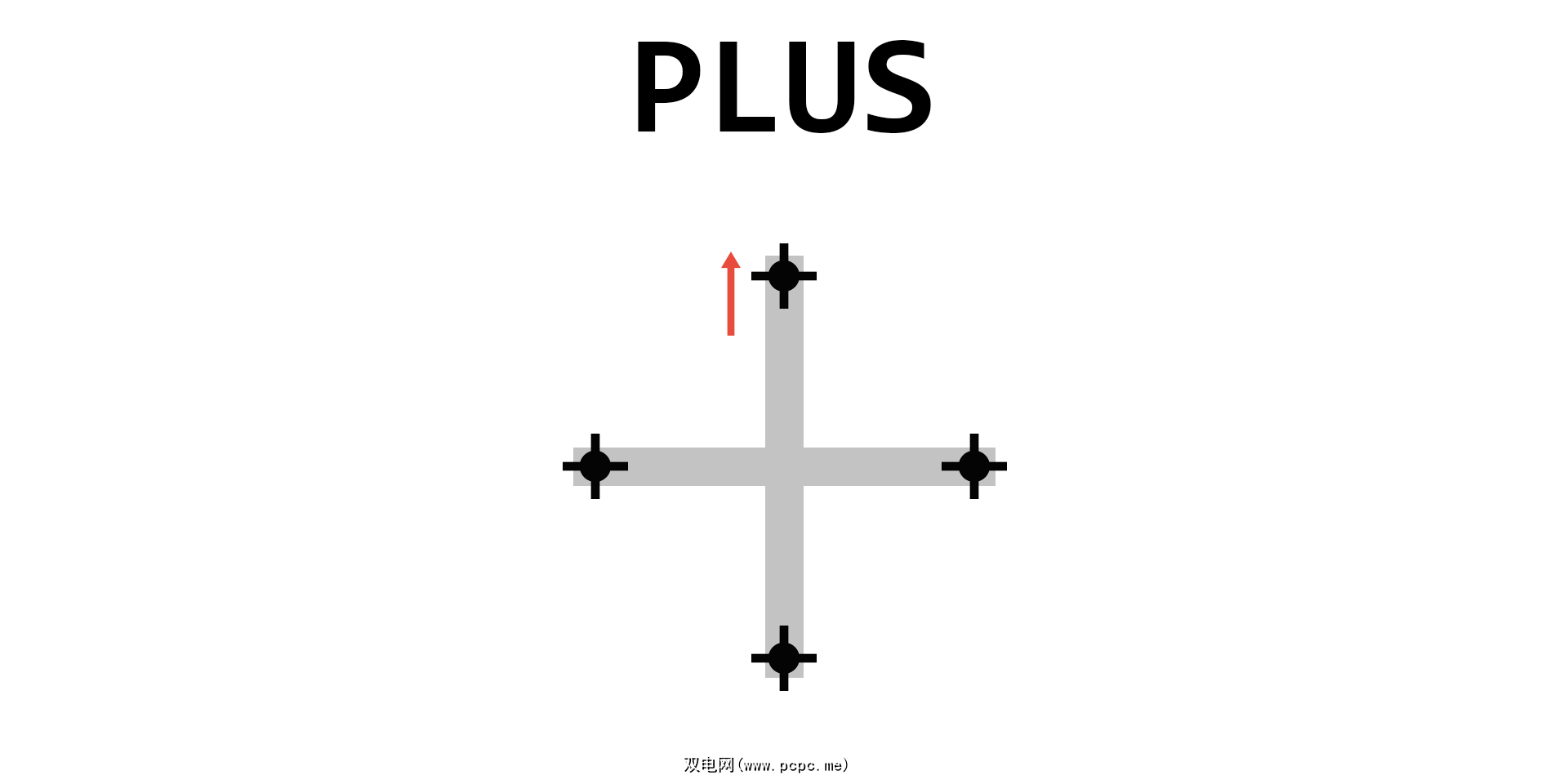 本质上,加号框是一个真正的 X 框,旋转了 45 度。这可能让人觉得两者是一体的,但 45 度旋转意味着每个电机都单独负责一个特定的方向。与电机耦合在一起的 X 型车架不同,在加型车架中,电机 1 为前部,2 为右侧,3 为后部,4 为左侧。没有情侣。