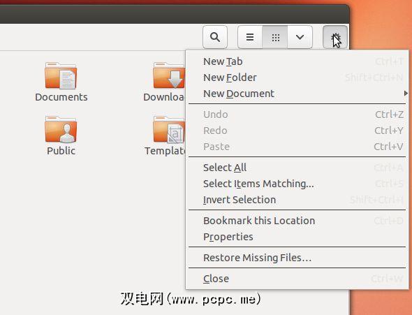 Usually Nautilus also includes a menu bar, but in Ubuntu releases to cut some fat in the interface, which has been hotly debated over whether or not that’s a good thing. The menu bar is actually pretty pitiful, as it only includes a File menu with a few options, where only the “Connect to Server” option isn’t found anywhere else. This is actually quite confusing for anyone who needs to use that functionality as they’ll think that they can find it — along with everything else — somewhere else such as by clicking on the gear/settings button. Besides the items found in the settings button, there aren’t any additional settings to configure.