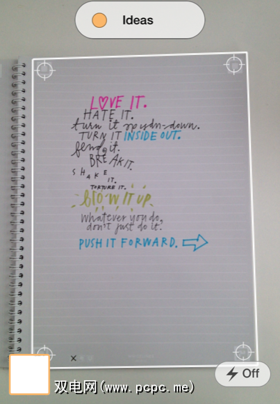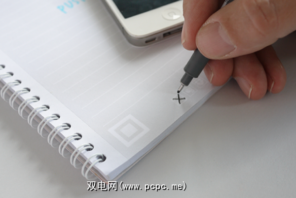 您可以像在传统的衬纸上一样在特种纸上书写,完成后,您可以启动应用程序并将屏幕与纸张对齐;它将自动扫描并捕获您的笔记。您甚至不必单击iPhone的“主页"按钮即可激活快门。