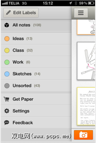 Whitelines还可以让您在设备中进一步组织捕获在一个或多个标签下,例如“想法",“工作",“草图",“班级"。但是,这些类别不会转移到Evernote或Dropbox笔记本或文件夹系统上。