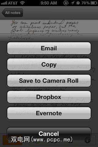 进行捕获后,您可以选择将捕获保存并导出到Dropbox或Evernote帐户,复制或通过电子邮件发送,或将其保存在iPhone的相机胶卷中。
