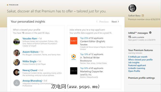 3。点击LinkedIn主页顶部的我图标>点击访问我的高级版>在过去90天内查看过您的个人资料数据的会显示在您的个性化见解下。
