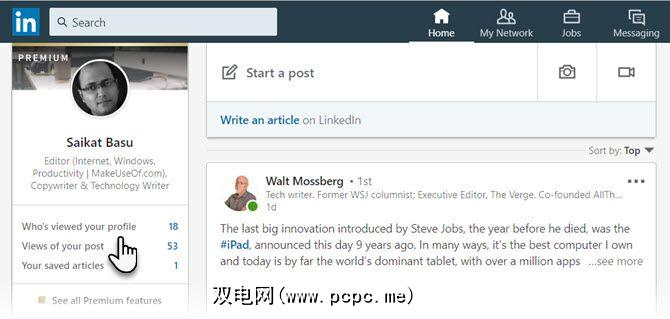 LinkedIn拥有免费和高级帐户。您是否可以在“谁查看了您的个人资料"仪表板上访问个人资料视图取决于您拥有的帐户,帐户的隐私设置以及访问您个人资料的人。