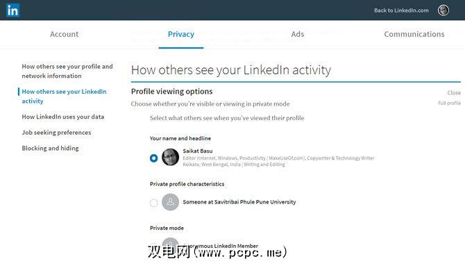 要查看最后五个概要文件视图,必须在概要文件可见性设置页面中启用姓名和标题的显示。