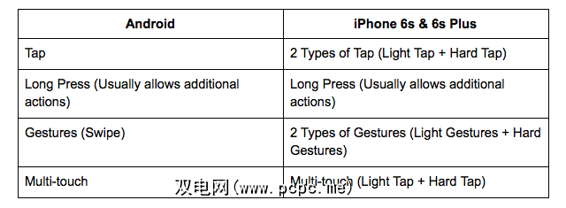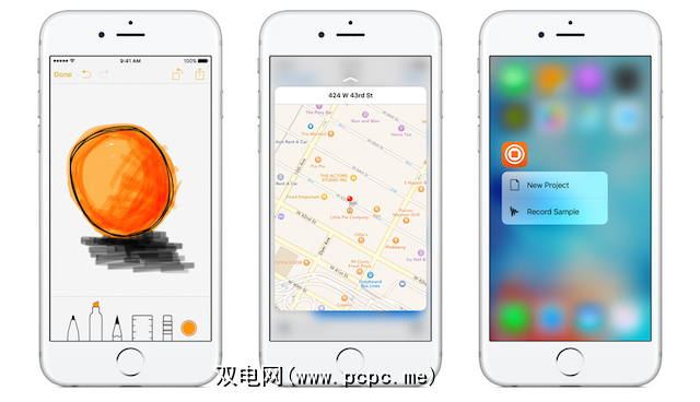 iPhone 6s和更大的iPhone 6s从本质上讲,Plus还为您如何与屏幕上的内容进行交互添加了三个新的修饰符。正如iOS架构师Kevin Harwood解释的那样,开发人员可以使用3D Touch添加四种新型的交互方式: