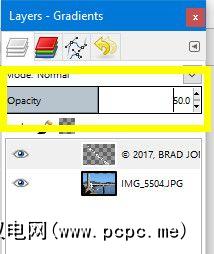 在图层窗口中选择文本元素,并将其不透明度调整为50%。<