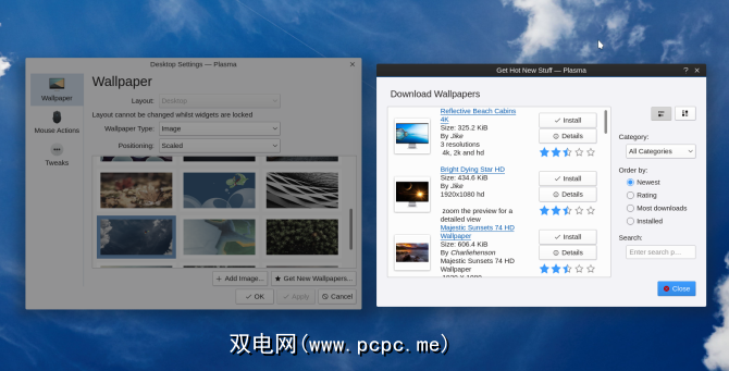 KDE拥有KDE Store,但您无需打开浏览器即可到达那里。集成直接集成到您的桌面中。也不仅限于扩展程序。您也可以用相同的方式下载窗口小部件和桌面墙纸。