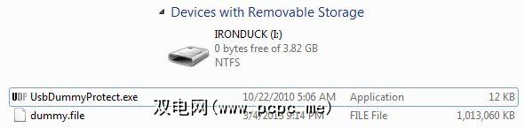 这就是USB Dummy Protect所做的。它会在USB设备上创建一个 dummy.file 文件,该文件会占用所有剩余的空闲空间。要删除该保护时,只需删除文件即可。简单。如果您倾向于频繁地与USB驱动器之间来回传输文件,这可能不是最优雅的解决方案,但是如果您的USB驱动器的内容很少更改,那么这对您来说可能很棒。
