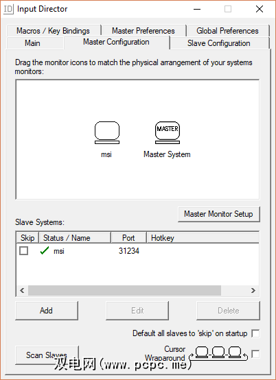配置屏幕的位置并不像ShareMouse那样漂亮,但是它可以绝招。您可以使用从站的网络IP地址或每个Input Director窗口中提供的主机名来添加从站。在所有要控制的系统上建立网络都是小菜一碟。