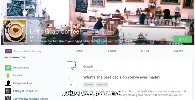 还值得注意的是,您无法在Imzy上关注其他人。而是完全与您选择加入的社区有关。