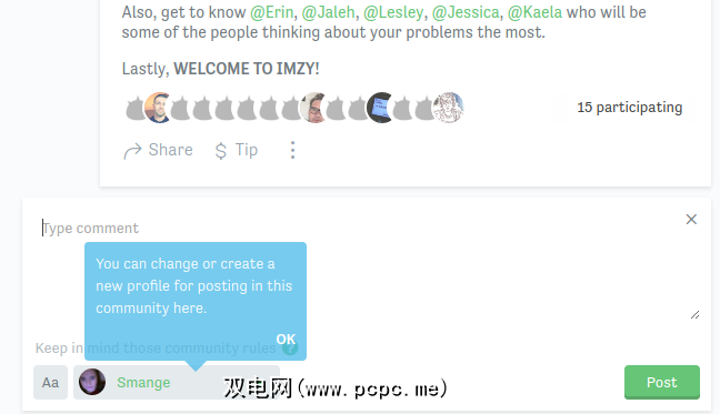 另外,在您发表评论或在社区中发布之前,您会被简单地显示为未命名成员。因此,在您积极选择参加并提名哪个个人资料之前,人们无法知道谁加入了。