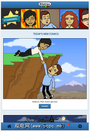 让Bitstrips如此令人着迷的原因是联合主演的使用。当您决定向Bitstrips添加联名时,您可以使用已经为Bitstrips建立了头像的任何朋友的头像和名字。当您在Facebook上分享时,共同的朋友会看到乐趣,并决定亲自检查Bitstrips。然后,当他们在条带中使用您的头像时,循环继续。