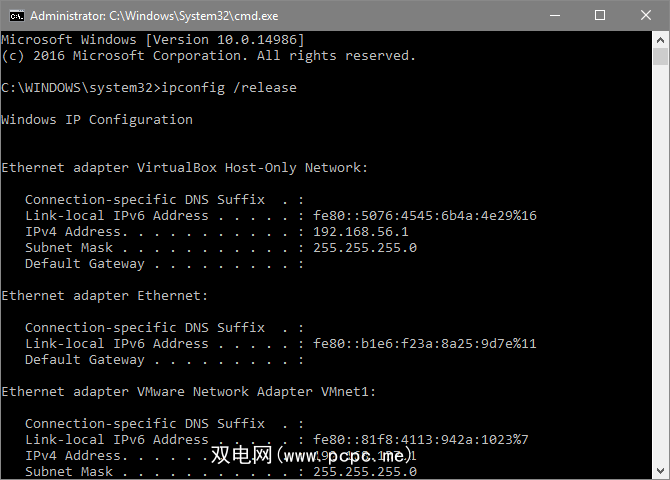 使用命令提示符工具,您可以放弃计算机的当前IP地址并请求一个新的IP地址。这是清除无效IP配置问题的好方法。