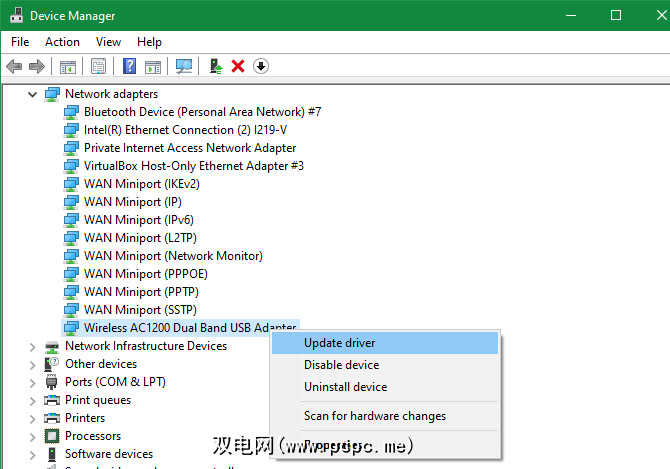 失败了,您可以右键单击无线设备,然后选择卸载设备,将其从计算机中删除。重新启动时,Windows应重新安装新的无线驱动程序。但是,如果它不能自动执行此操作,则需要使用另一台计算机或有线连接自行重新安装。