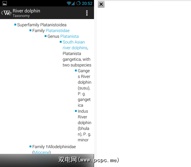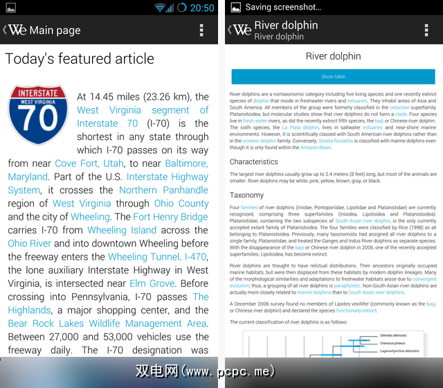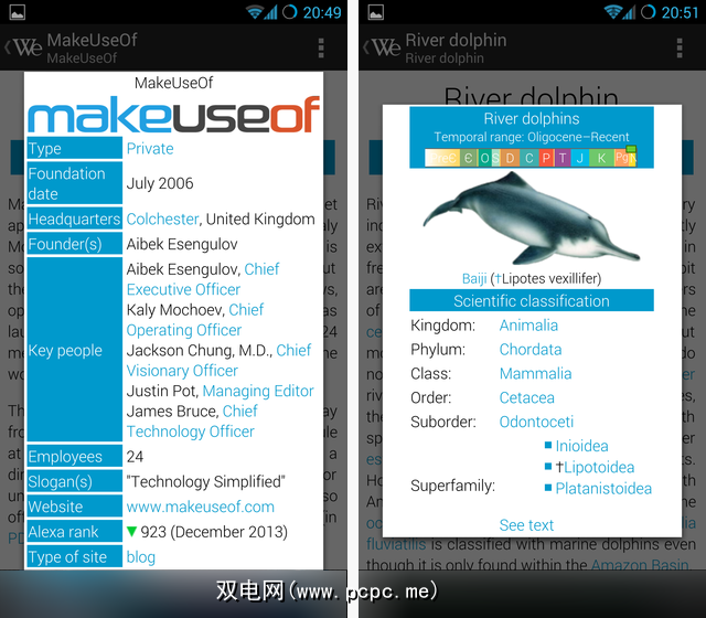 上面,您可以看到WikiExplorer的浮动灯箱显示的两种类型的侧边栏:是一个非常受欢迎的科技博客,另一个是高度聪明的哺乳动物。它们根据不同的模板进行了格式设置,但是WikiExplorer使它们看上去都很好。轻按图片可将其浮动在屏幕上,您可以捏按所需的缩放比例。原始文章在背景中保持打开状态,因此当您想回到文本时没有任何延迟。