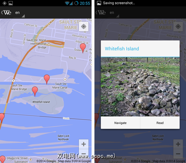 借助WikiExplorer,您不仅可以获取地图,而且可以在世界各地徘徊并长按任意一个点,以查看所有相关条目的视图: