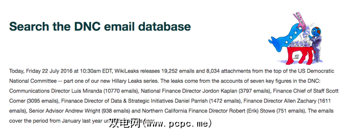 2016年7月,WikiLeaks发布了来自DNC的19,000封电子邮件和8,000个附件。这些电子邮件来自属于委员会高级成员的七个帐户。这些文件是从2015年1月到2016年5月的时间。