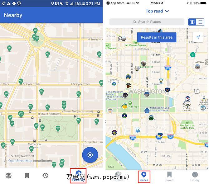 如果您刚刚安装了Wikipedia应用,请确保您打开了定位服务,否则此功能将无法正常运行。您可以根据需要按城市或地址进行搜索,但是当出门在外时,让该应用为您完成工作更为方便。